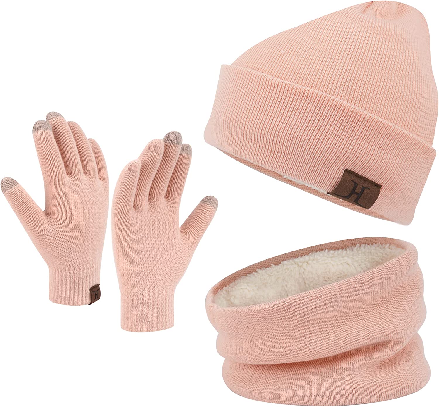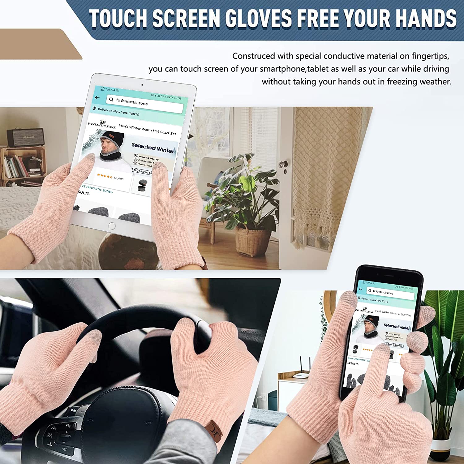 Winter Beanie Hat Scarf Touchscreen Gloves Set for Men and Women, Beanie Gloves Neck Warmer Set with Warm Knit Fleece Lined