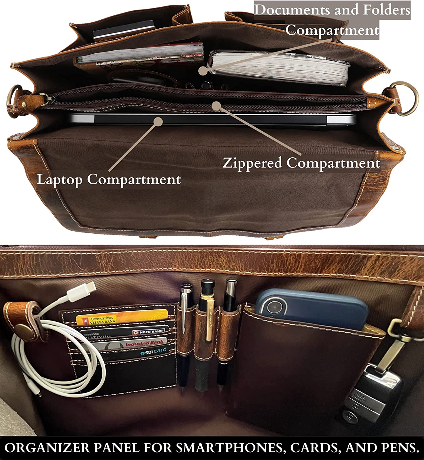 • ✅ ADJUSTS FOR COMFORT… For those long journeys away, the shoulder strap on this leather laptop bag is fully adjustable; there’s also a zipper closure above the 2+1 compartment to keep things safe while on-the-go