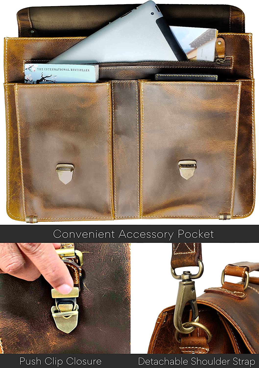 • ✅ SUITS BUSINESS OR CASUAL… It has that difficult-to-achieve leather briefcase look while being urban & hip; with brass buckles & fittings, heavy-duty lining & stitching, and YKK Zippers