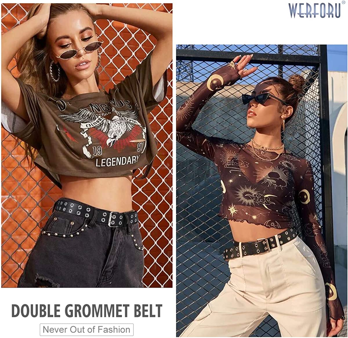?Perfect Women Belts for Any Occasions: The double grommet belt is perfect for any jeans,pants,dresses with 2 rows of grommets, rather punk rock & cute look for men or women. The studded design is suitable for both daily use and costume parties, a great gift women belt for Halloween,Christmas,Mother’s day, cosplay and other activity.