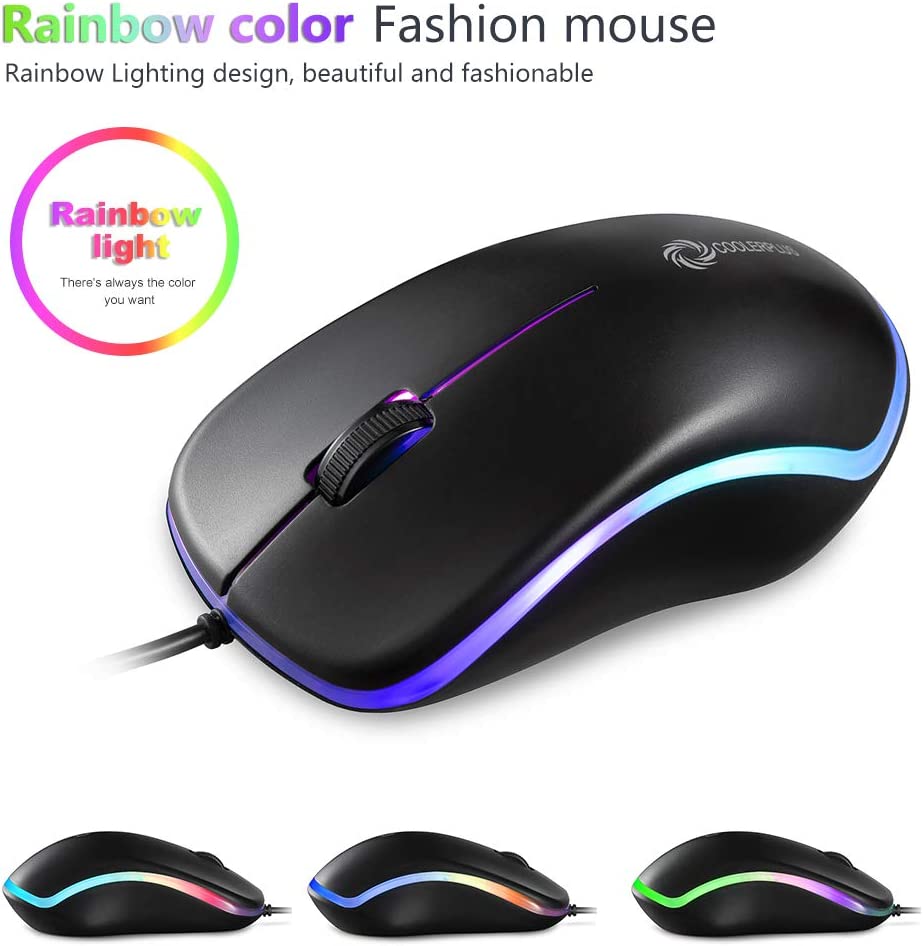 Plug and Play USB Mouse with rainbow light, Precise tacking and easy selction, No need to install any other drivers or software. The high-quality USB plug make the mouse easy to use and stable. Coolerplus mouse with flash rainbow light.