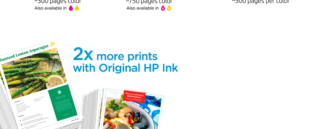 - Up to 2x more prints with Original HP Ink vs. non-Original HP Ink