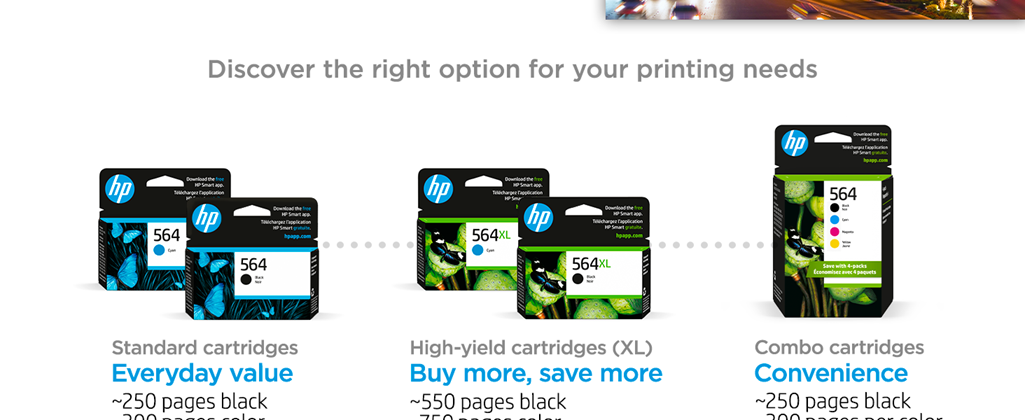 - Get ink your way: buy Original HP Ink Cartridges or save up to 50% and never run out with HP Instant Ink, the Smart Ink Subscription