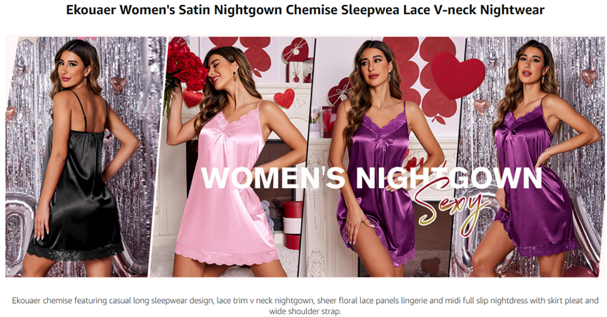 Wonderful sleepwear lingerie, wide shoulder straps that offers sleek looks and comfort
