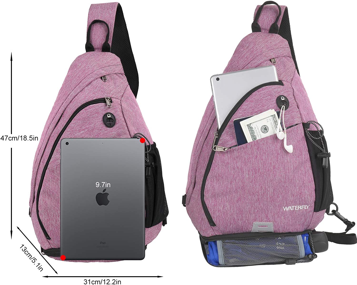 INNOVATION UMBRELLA POUCH & WATER BOTTLE HOLDER: A zippered mesh net storage at the bottom for wet umbrella or wet towel. The side water bottle holder provides stable brace during outdoor sports. For the convenience, it features the hidden back pocket and shoulder strap pocket(Suitable for credit cards, money bills and phones smaller than 5.8 inches in size)