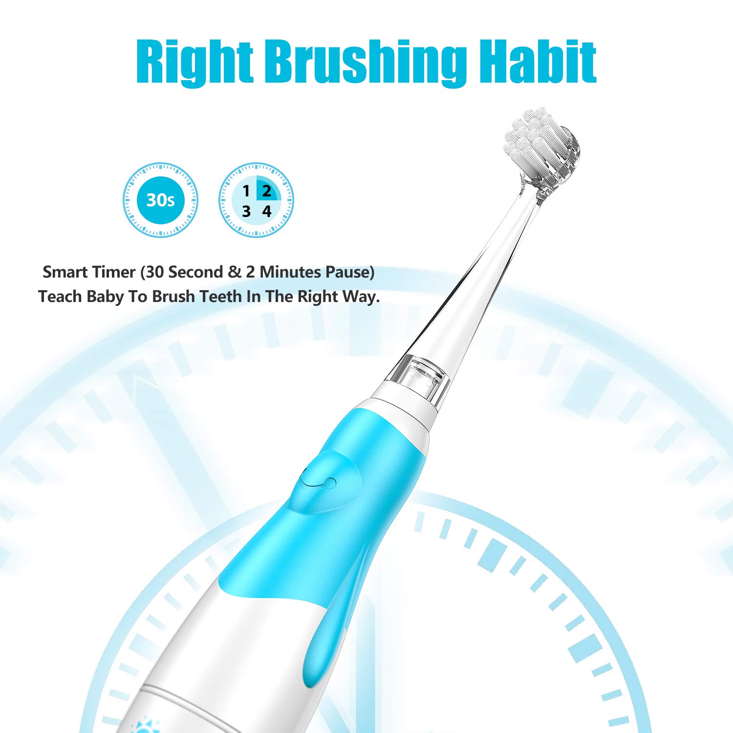 DADA-TECH Baby Electric Toothbrush, Toddler Teeth Brushes with Smart LED Timer and Sonic Technology for Infants Ages 0-3 Years (Blue)