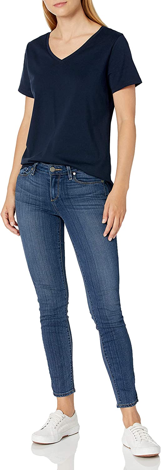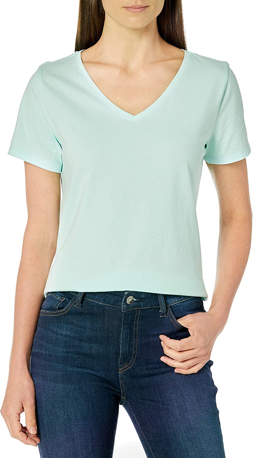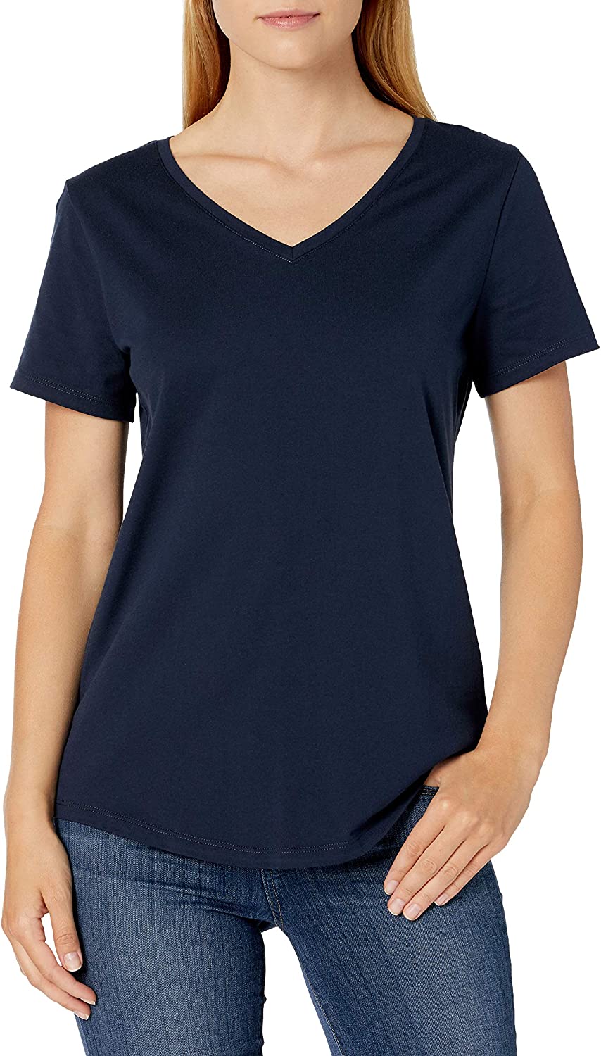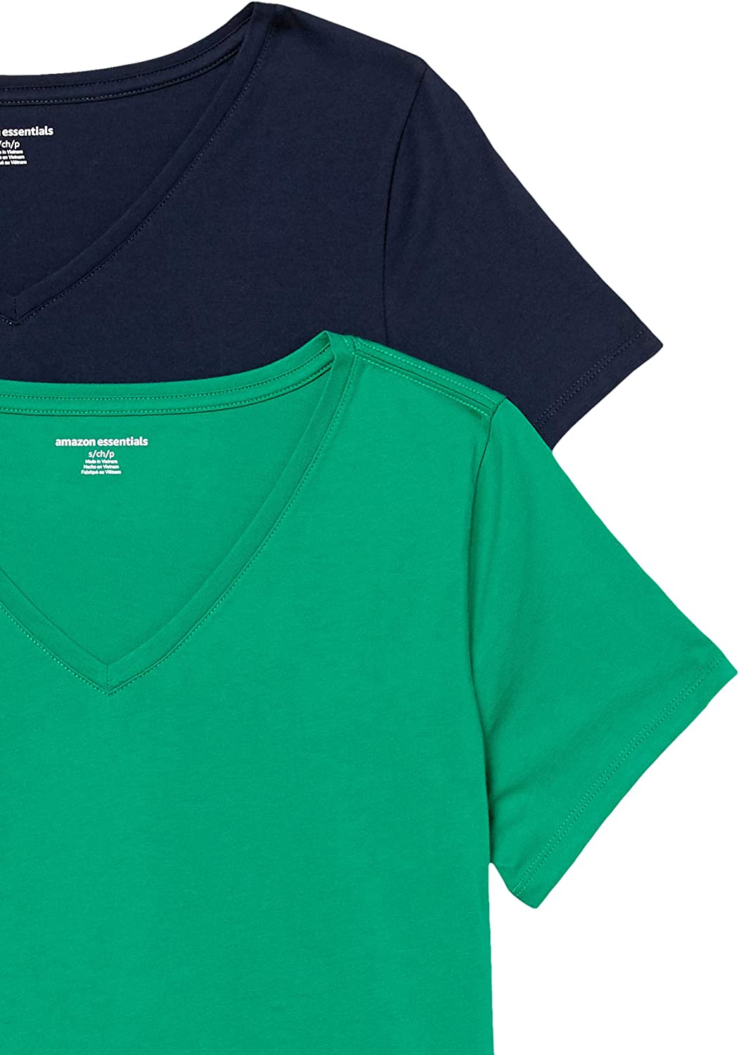 Amazon Essentials Women's Classic-Fit 100% Cotton Short-Sleeve V-Neck T-Shirt (Available in Plus Size), Pack of 2