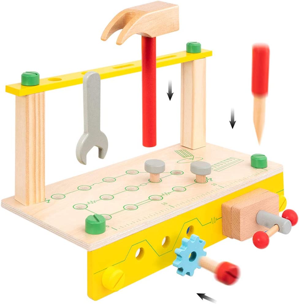 ROBUD Wooden Tool Workbench Toy for Kids & Toddlers, with Wood Tool Set Gift for Boys Girls 3 Year Old and Up