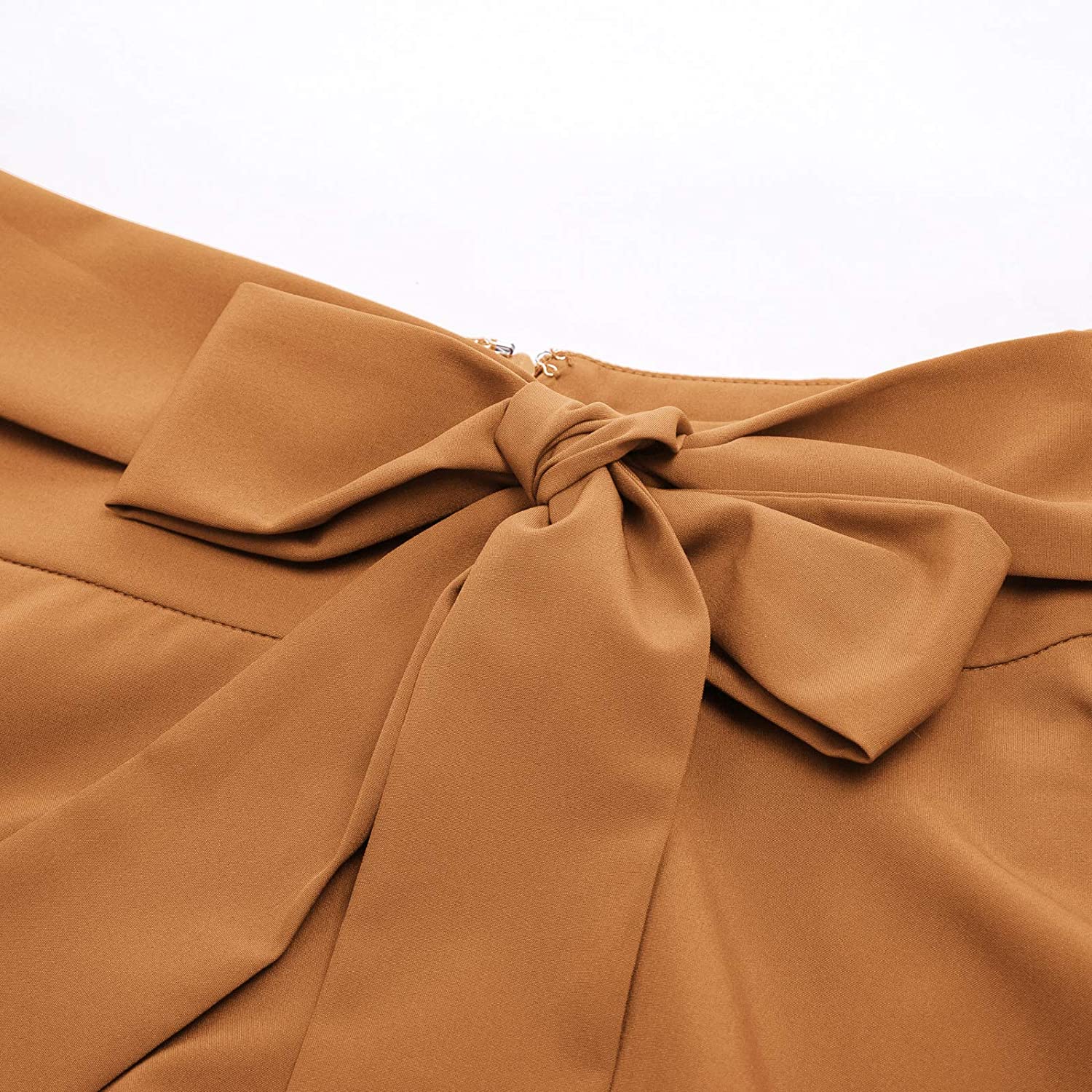 Kate Kasin Women's Satin Silk Bodycon Split Skirt High Waist Bow Tie Knee Length Pencil Midi Skirts Wear to Work