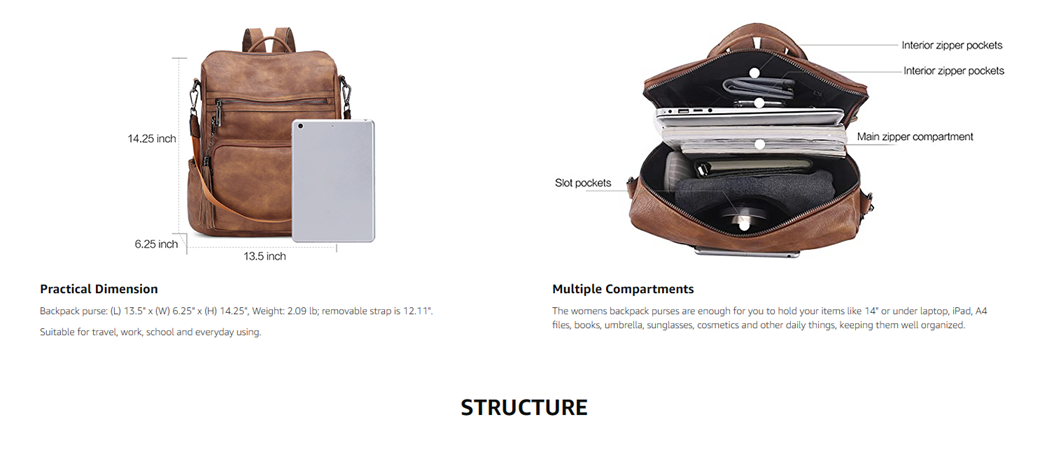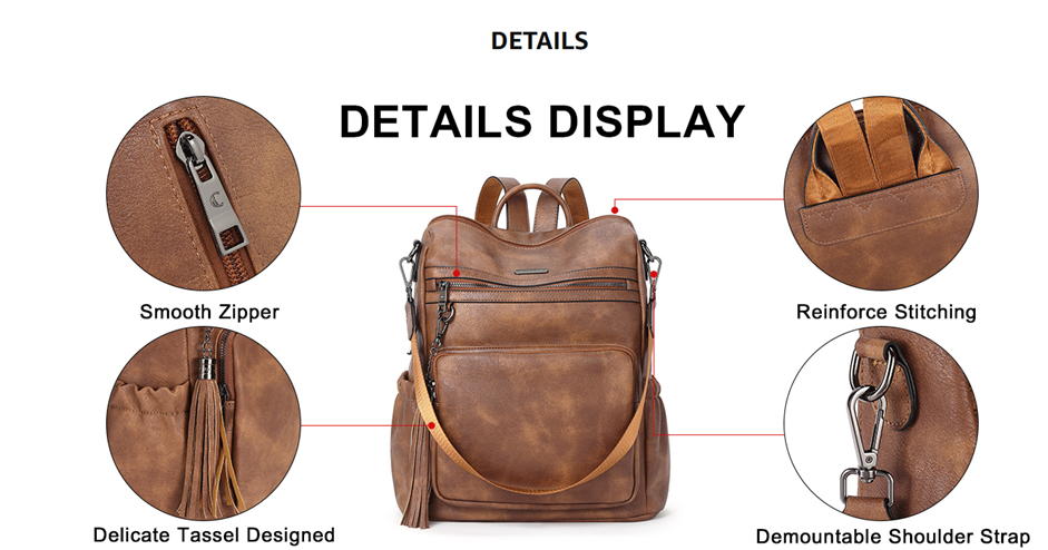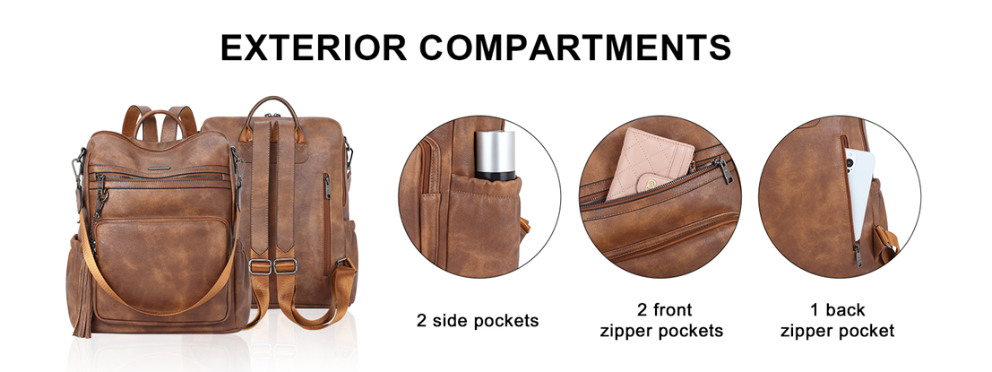 • Convertible Carrying Ways: The bag can be used as shoulder bag or backpack. 1 back zipper pocket for security and privacy. Top double U external zippers are designed for opening in two directions to have a quick access to your items.