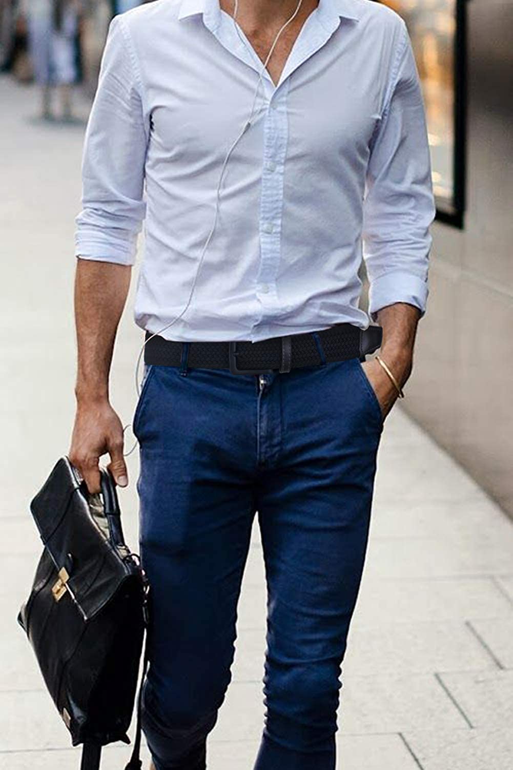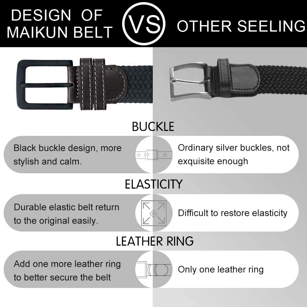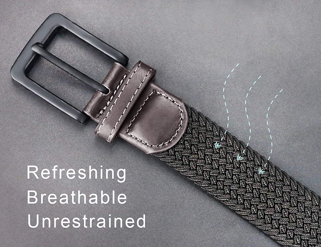 • Q: Will this elastic belt be too tight to be uncomfortable? A: Of course not. The tightly braided web belt is heavy and thick for strength and comfort. With this simple pin buckle and elasticated design, you can fix the firmly at any length. Essential accessory fits in well with any types of jeans, trouser and pants.
