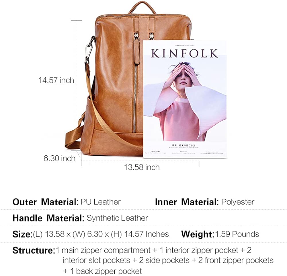 [HIGH-END MATERIAL]: Warm Tip: The long shoulder strap is made of canvas and put on the interior zipper pocket of the backpack, please check it when you receive. Made of PU leather with metal hardware, heavy duty zips and fabric lining, which is fashionable and durable.