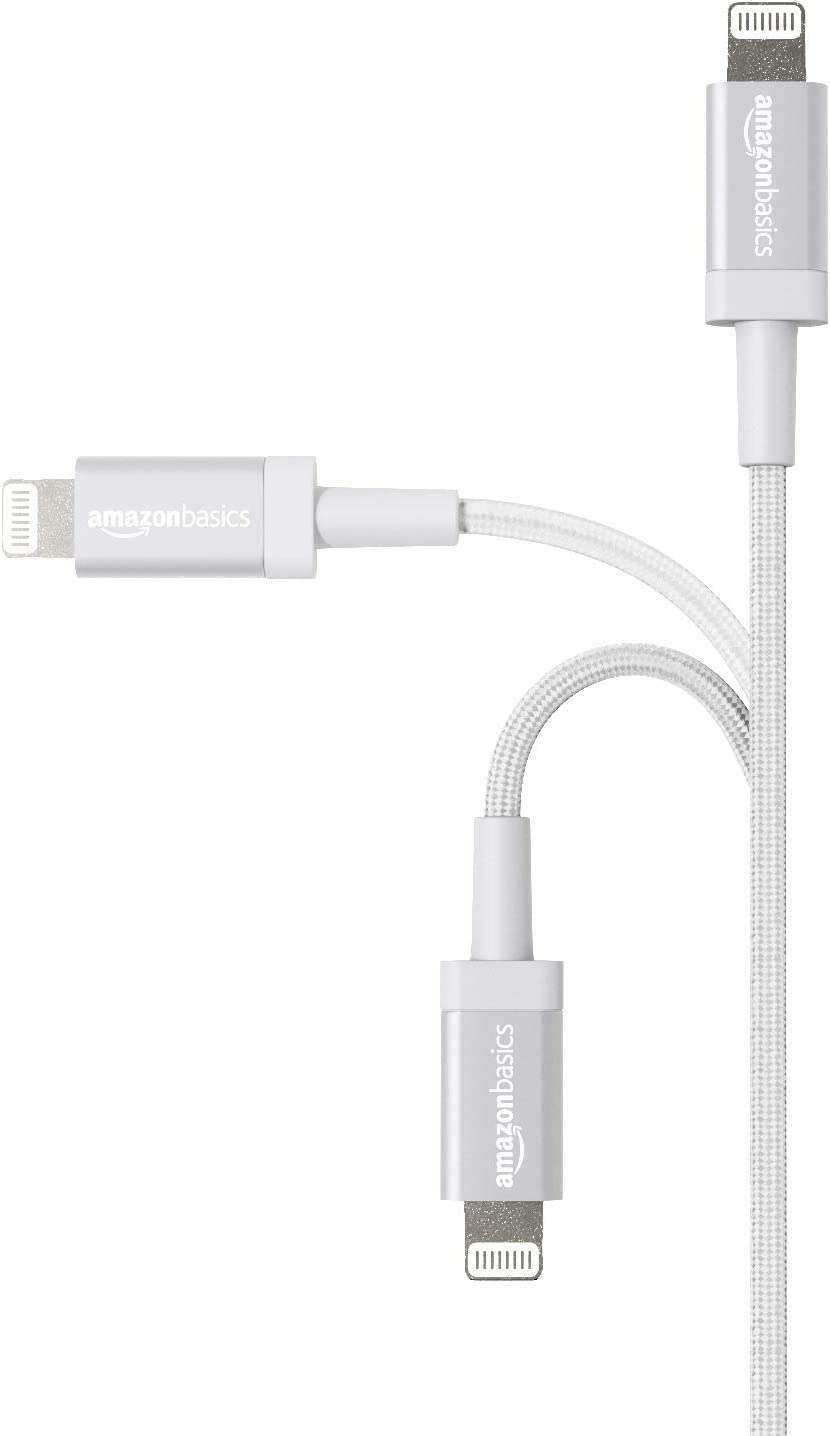 Amazon Basics Nylon USB-A to Lightning Cable Cord, MFi Certified Charger for Apple iPhone, iPad, Silver, 6-Ft