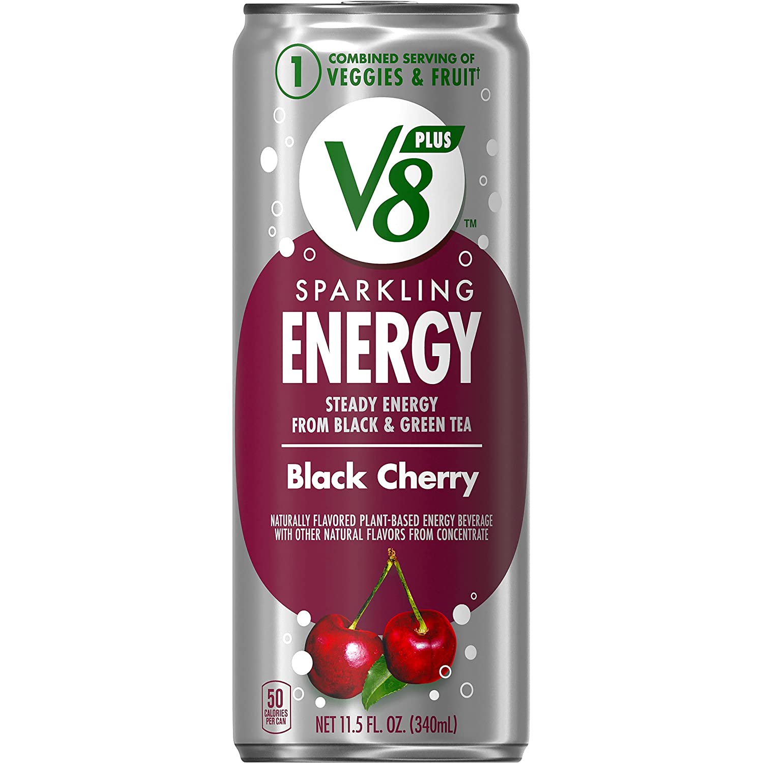 • Fruit Flavored Energy Drinks: Twelve (12) 11.5 fl oz cans of V8 +SPARKLING ENERGY Black Cherry Energy Drink