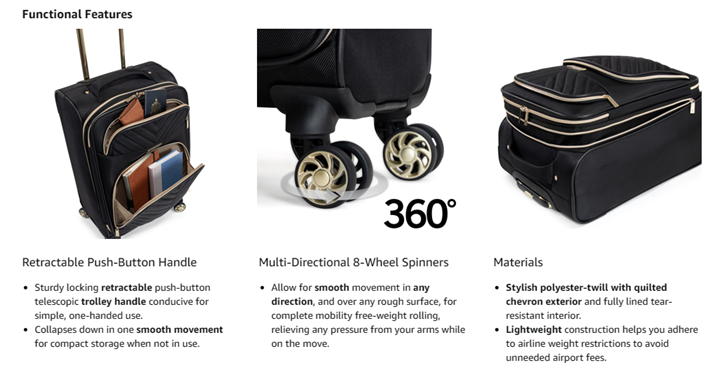 • Suitcase expands an additional 2.0 inches for additional space when needed.