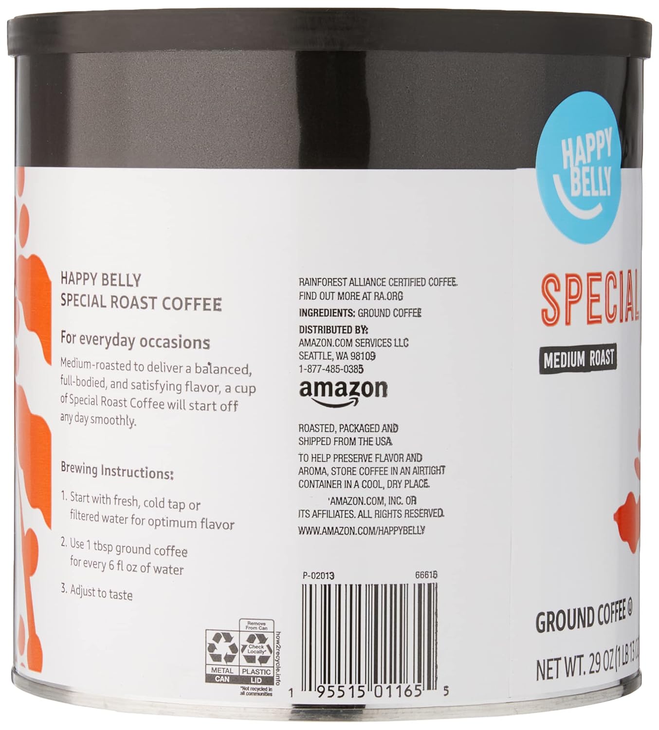 Amazon Brand - Happy Belly Special Roast Canister Coffee, Medium Roast, 29 Ounce