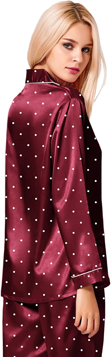 SWOMOG Womens Silk Satin Pajamas Loungewear Two-piece Sleepwear Button-Down Pj Set