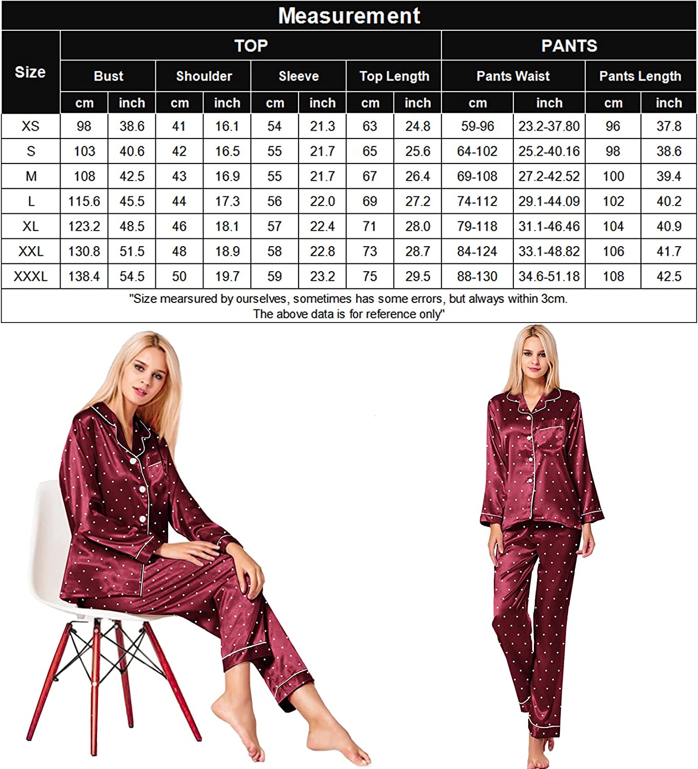 • Materials: This lightweight pajama set is made of lightweigh silk satin, soft,breathable and skin-friendly, help you have a sound sleep.