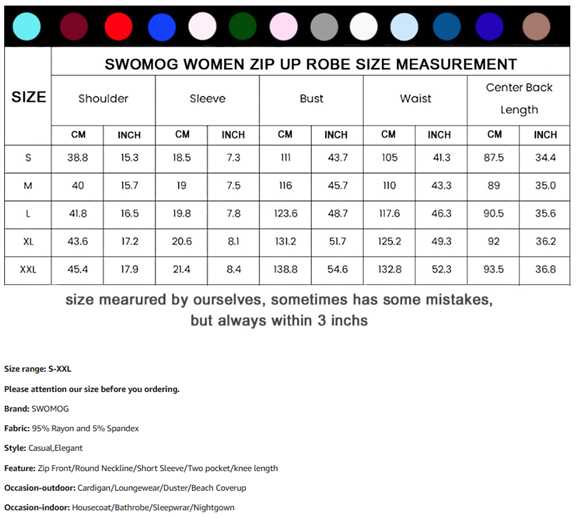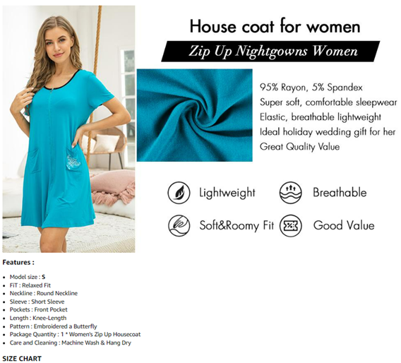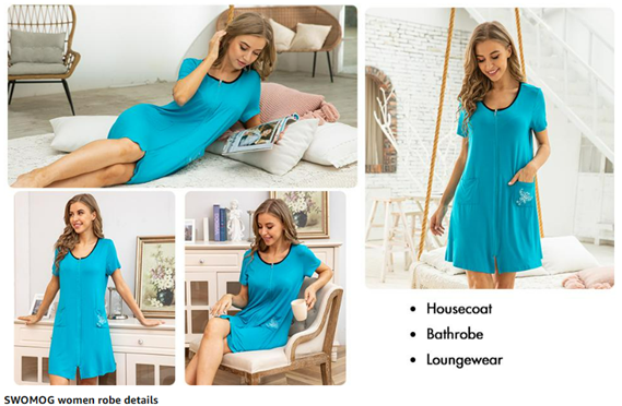 • Zipper Front Housecoat : unlike button down nightshirts, smooth zipper front closure was designed to makes it easy for put on and take off and helps you free from troules to button up;