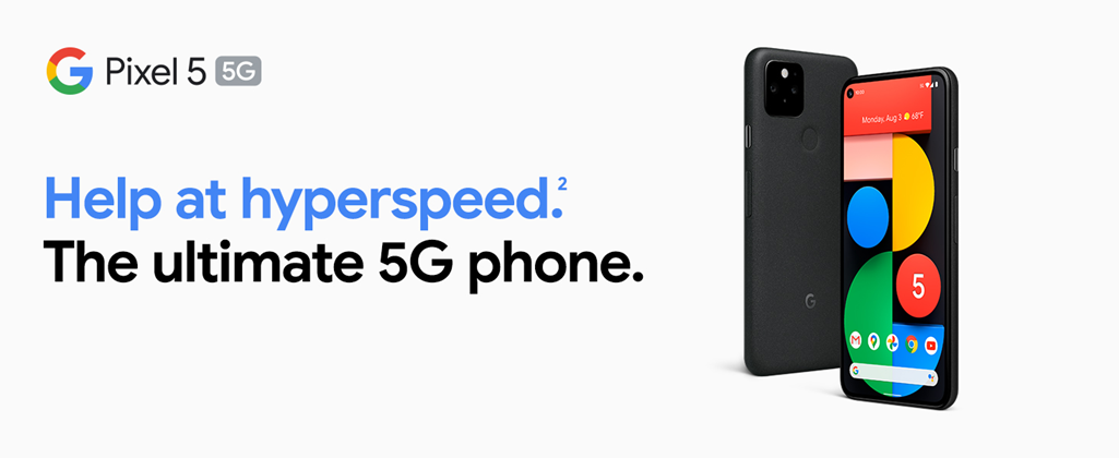 Meet Pixel 5, the ultimate Google phone with the speed of 5G.[2] It has the helpful stuff you need in a phone, with an extra boost of 5G speed. So you can download a movie in seconds,[3] take stunning ultrawide photos in any light, and keep going with an all-day battery that can last up to 48 hours with Extreme Battery Saver.[8] Pixel 5 also charges wirelessly,[6] keeps your data safe, blocks robocalls,[11] and is water-resistant.[10] It’s the super helpful 5G Google cell phone at a helpful price. And it’s an unlocked smartphone, so you can choose the data plan and carrier that work for you.[1]