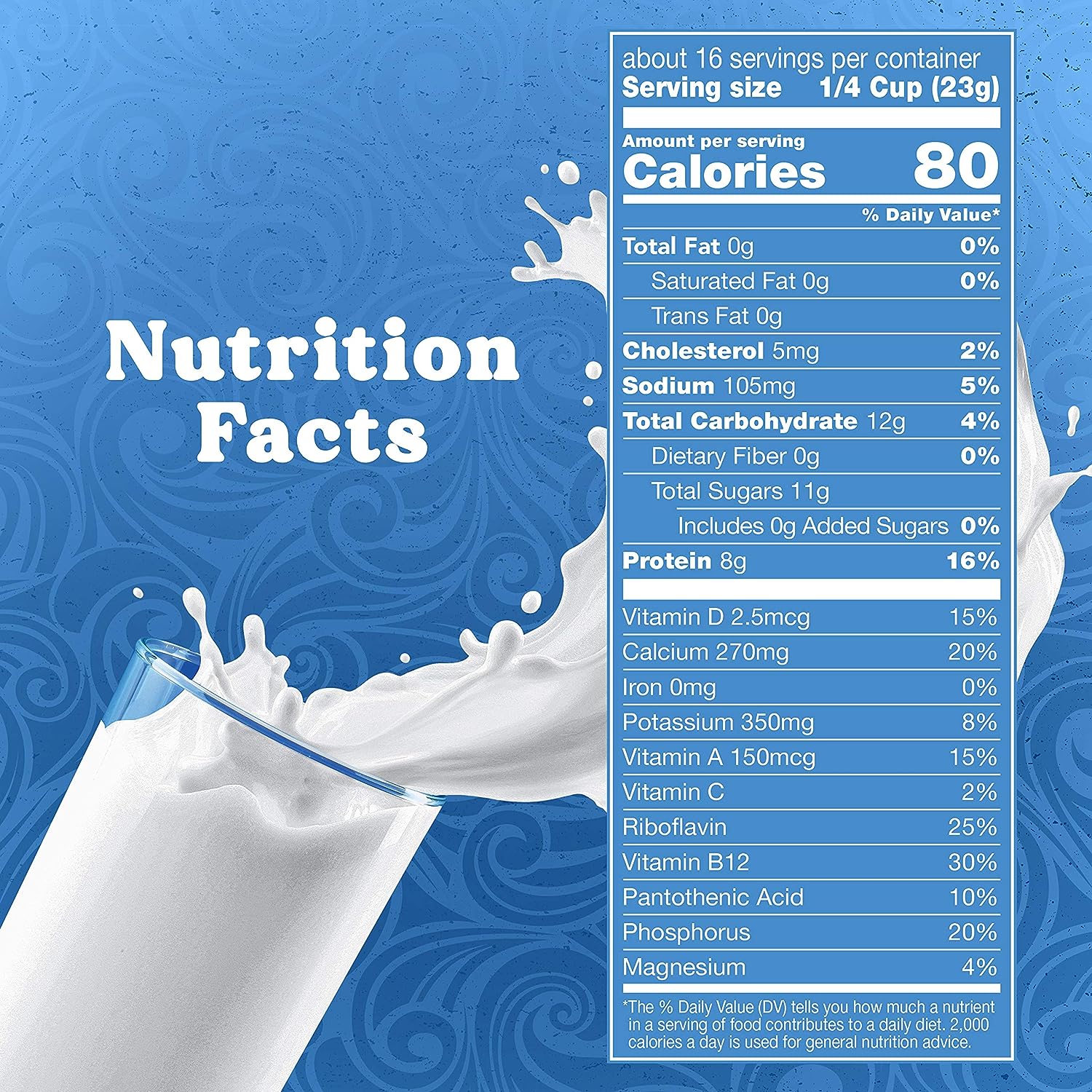 • Enjoy delicious powdered milk fortified with vitamins A and D that is an excellent source of calcium, contains no fat, 80 calories and 8 grams of protein per serving