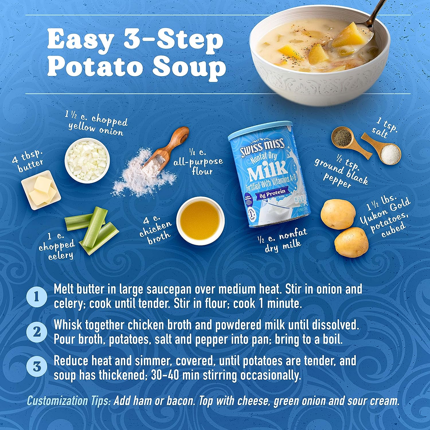 • Contains one 12.98-Ounce canister of Swiss Miss nonfat dry milk with vitamins A and D