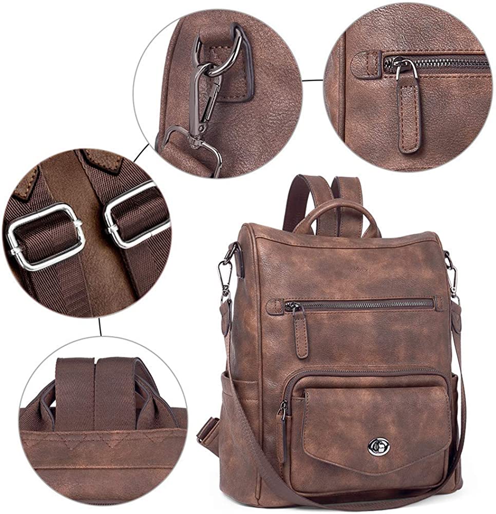 [High Quality]: Women backpack purse are made of high-quality PU leather with reinforced stitching, gun-tone hardware, soft fabric lining, super sturdy & fashionable