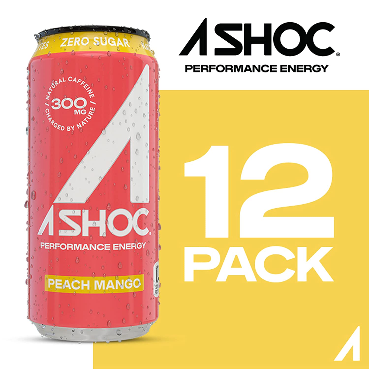 A SHOC Performance Energy Drink, Blue Raspberry, 16 Ounce Can, Natural Energy Blend, BCAAs, Ocean Mineral Electrolytes, and No Chemical Preservatives, 12-pack