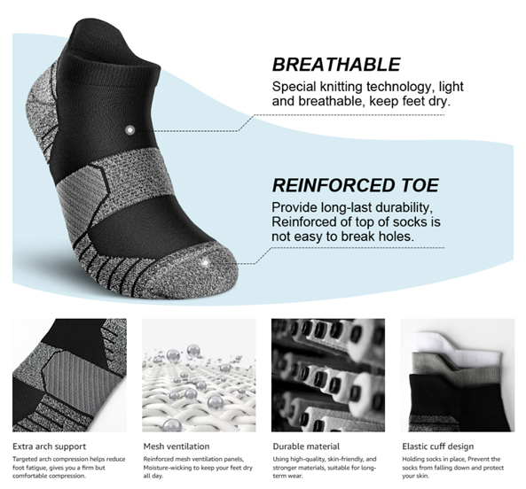 • [MESH DESIGN & BREATHABLE] These compression ankle socks for women are made of high-quality material, which can quickly absorb moisture and release sweat. Mesh ventilation in the arch reduces heat and increases perspiration, good moisture-wicking performance to help your feet keep cool and breathable all-day long