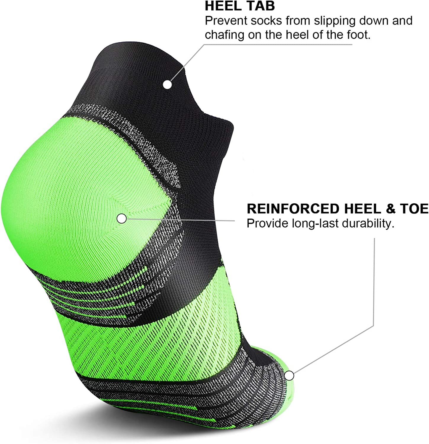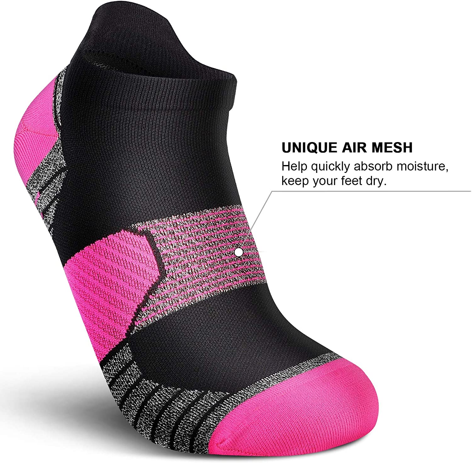 • [TARGETED COMPRESSION ZONES] Compression is proven to improve blood flow, move faster, react quicker, and use less energy. Targeted compression zones provide varying levels of support from moderate to extra firm. These low cut socks are designed to promote blood circulation and oxygen flow preventing cramping, fatigue, swelling, and helps in muscle recovery