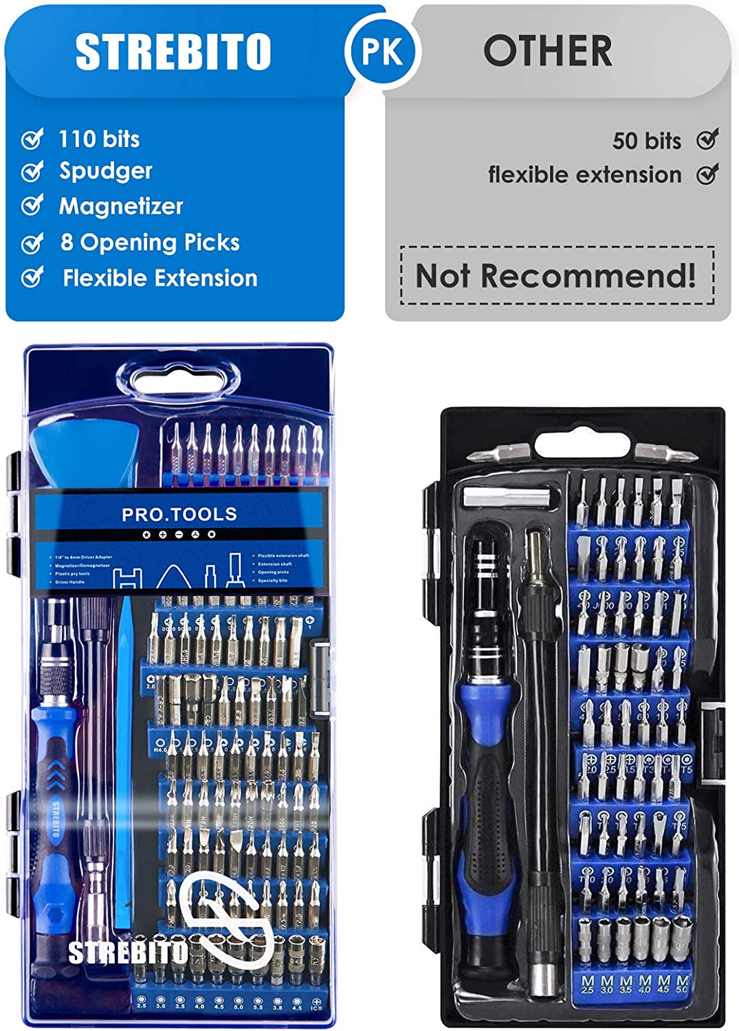 - 【Variety & Versatility】This screwdriver set has 110 different bits(Phillips, Flat Head, Torx, Torx Security, Pentalobe, Hex, Gamebit, etc), which is useful for laptop, PC building, cell phone, tablet, MacBook, iPhone, iPad, game consoles/controller, Ring doorbell, sewing machine, HVAC, knife and more. This is the toolkit every DIYer, fixer, hobbyist, and professional needs to tackle any job, also a decent gift for your families, friends, colleagues, etc