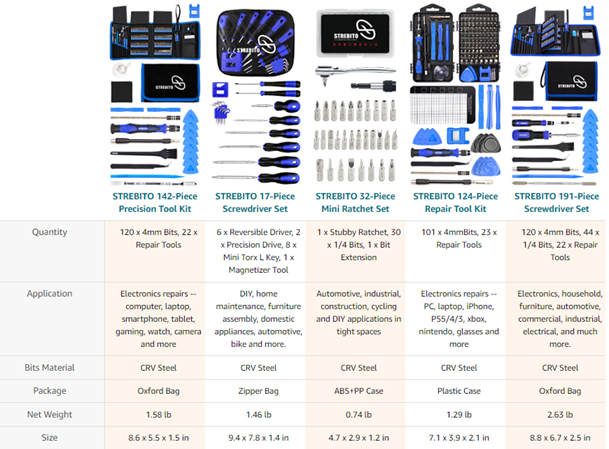 - 【Organize & Portable】All screwdriver bits are stored in rubber bit holder which marked with type and size for fast recognizing. And the repair tools are held in a tear-resistant and shock-proof oxford bag, offering a whole protection and organized storage, no more worry about losing anything. The tool bag with nylon strap is light and handy, easy to carry out, or placed in the home, office, car, drawer and other places