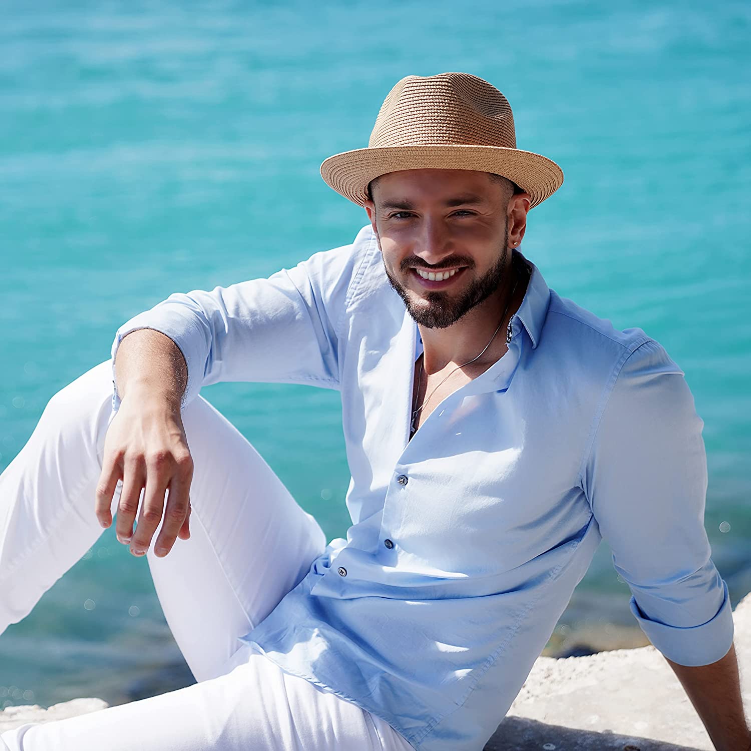 • Upgrade your summer style with Lanzom's Straw Fedora Hat - the perfect Summer Beach Sun Hat for Men and Women who love outdoor travel, holiday, or beach playing.