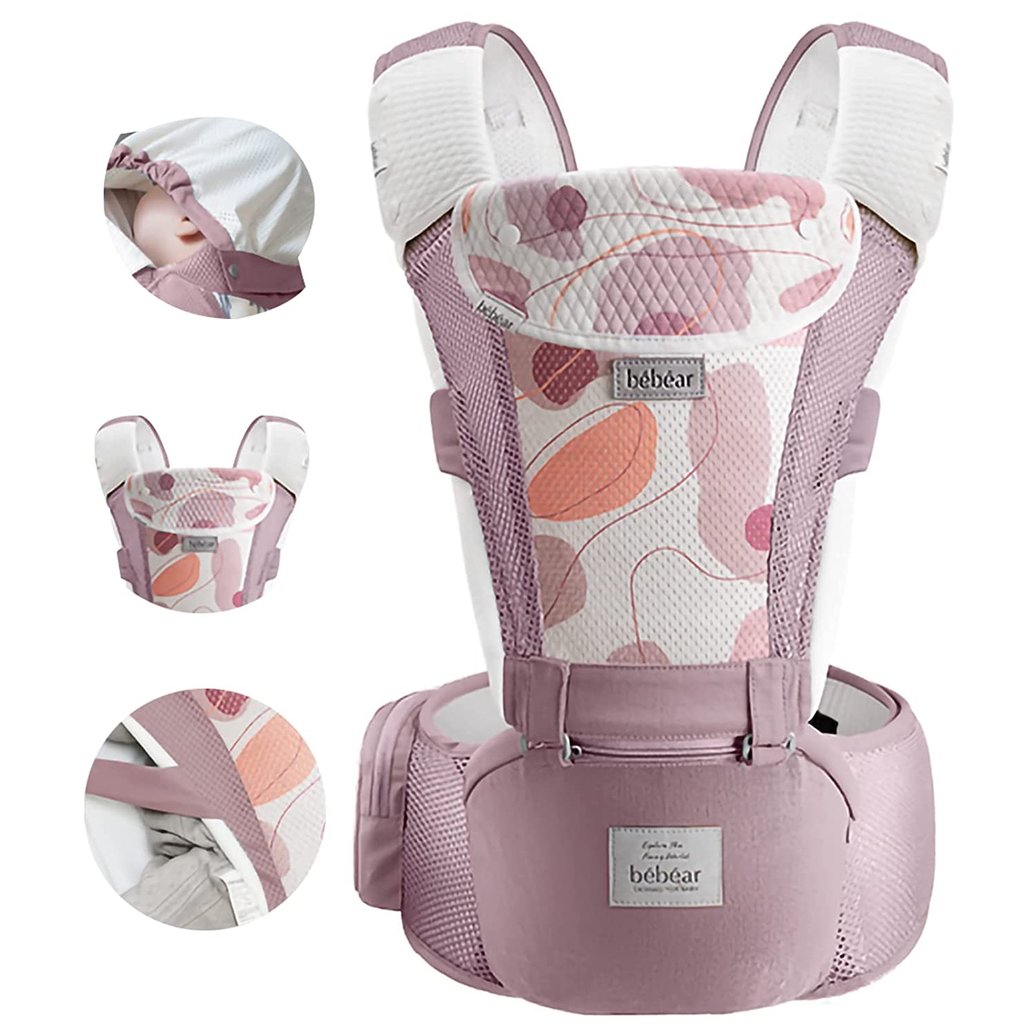 Bebamour Baby Carrier Front and Back Carry Baby to Toddler Baby Hip Carrier with Head Hood & 3 Pieces Teething Pads (Light Green)