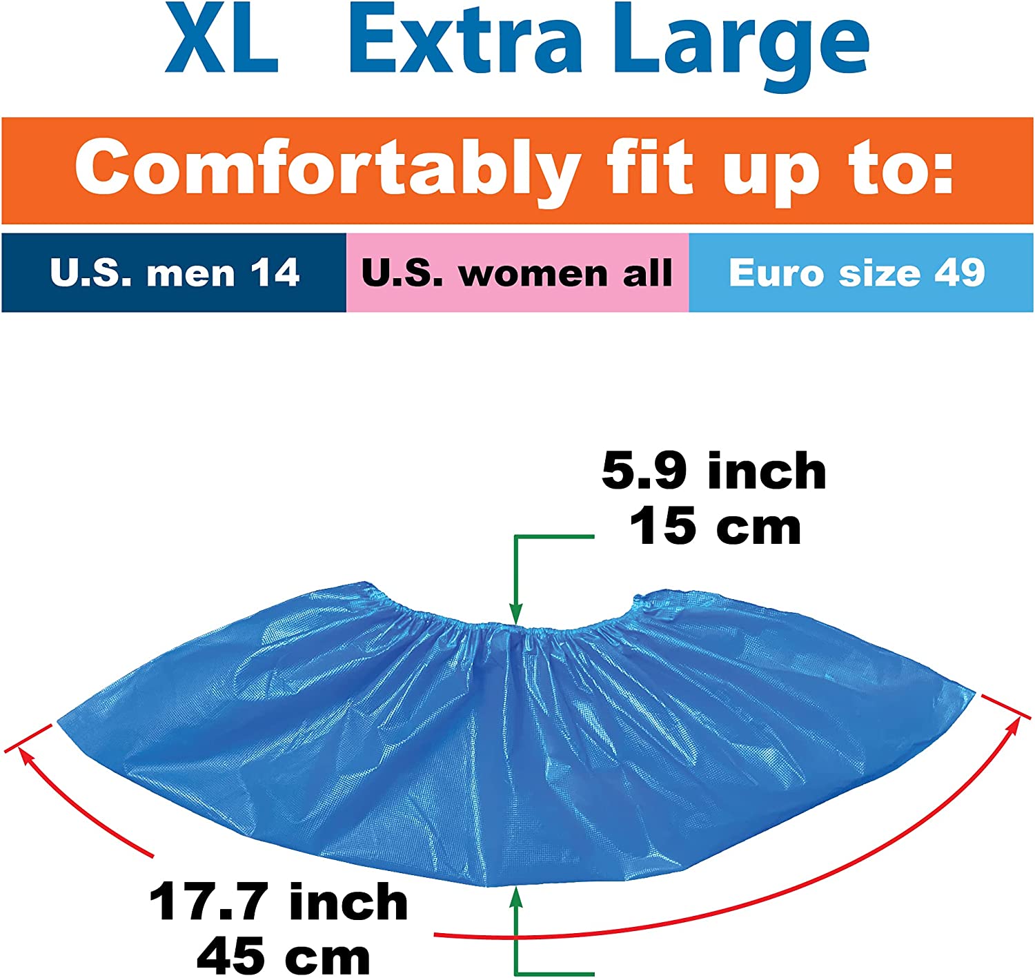 ProtectX Disposable Shoe & Boot Covers, XL Extra Large, 100-pack (50 pairs), Waterproof, Slip Resistant, Durable CPE plastic, Fits up to Men’s 14 US Size and All Women’s US Size Shoes