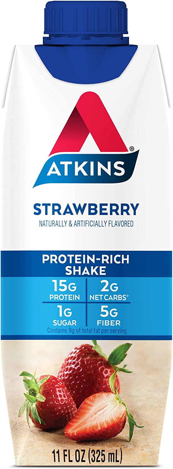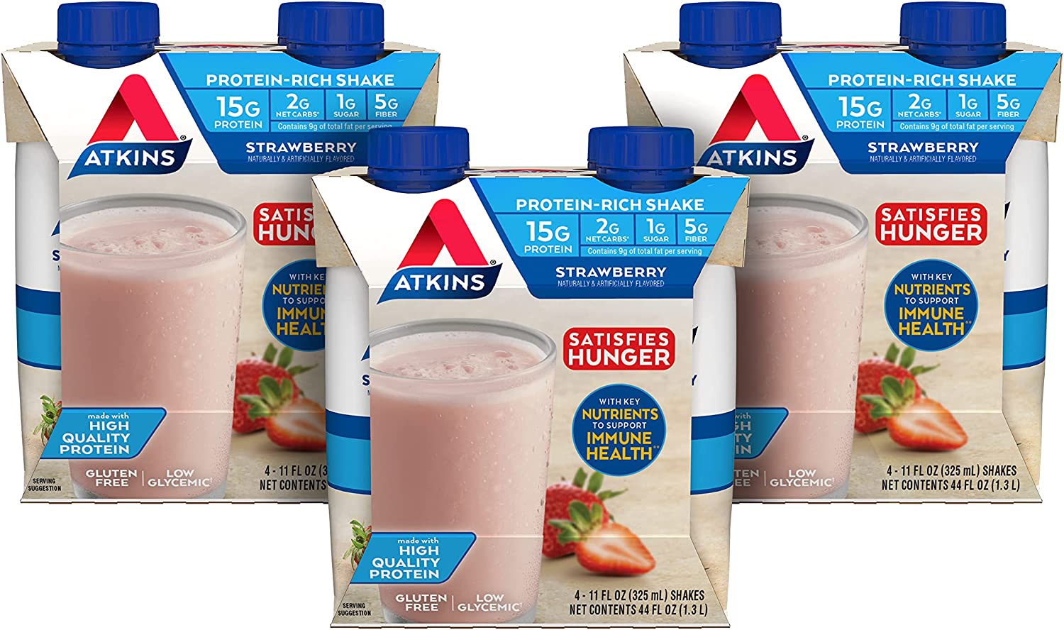 Atkins Strawberry Protein-Rich Shake, Gluten Free, Keto-Friendly, 12 Count