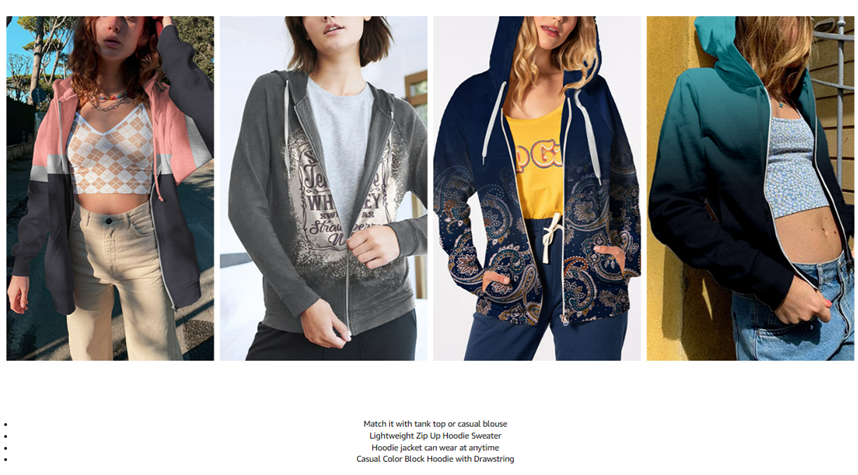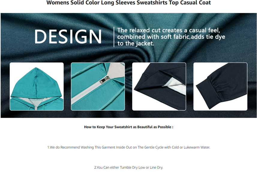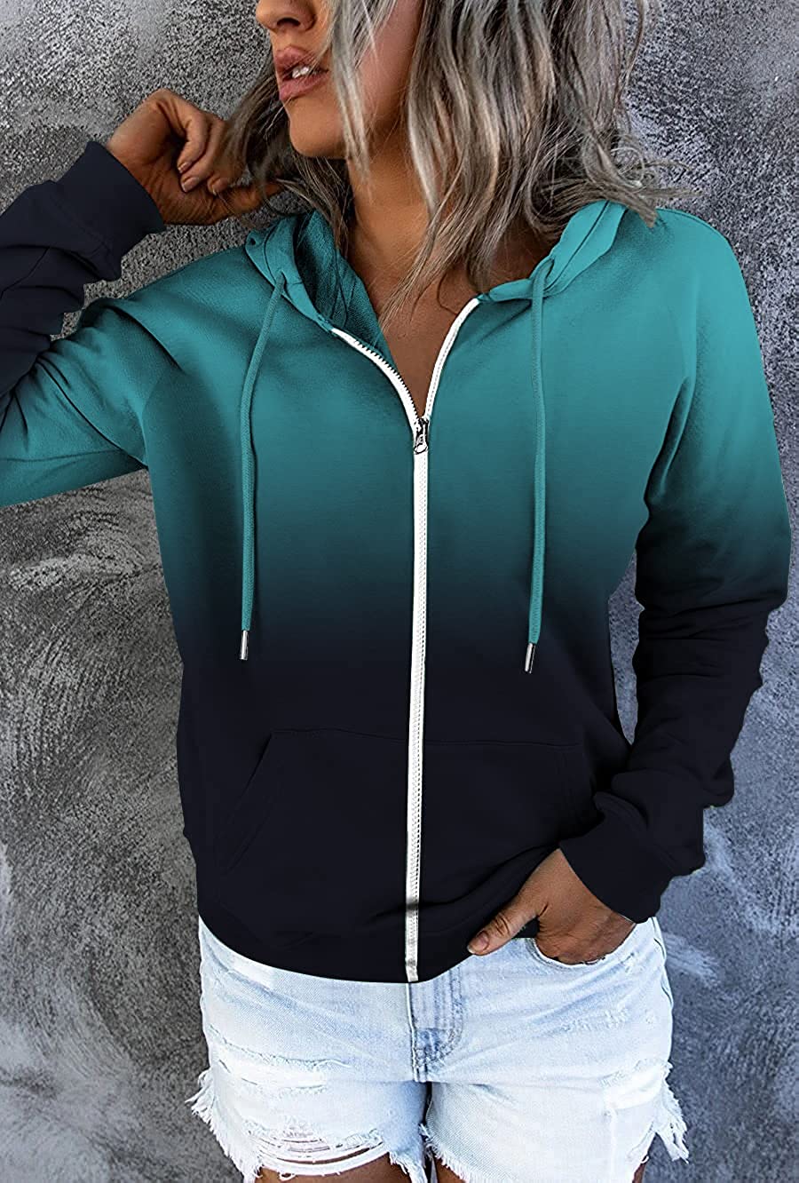 • Features: Color block,Long sleeve, Full zip up ,Tie dye,Drawstring, Striped print ,Floral print,Graphic.