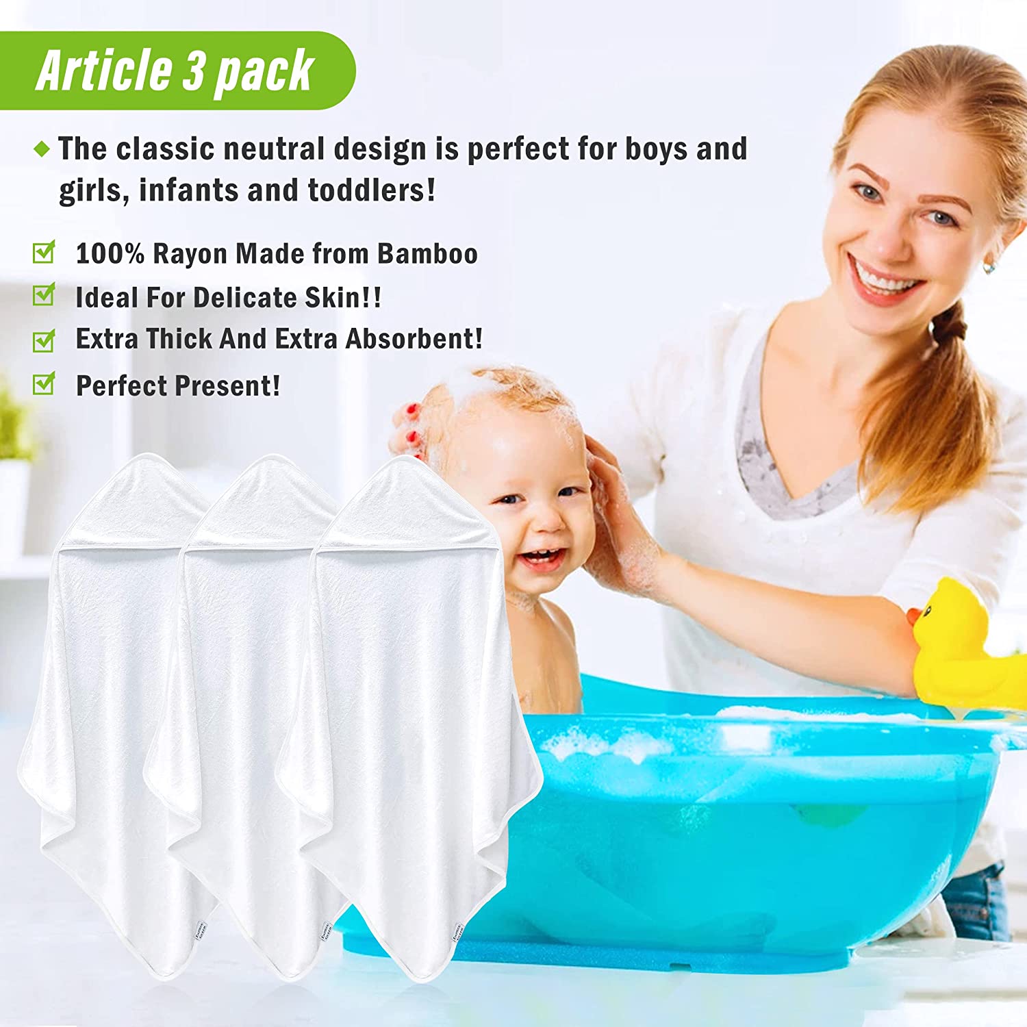 DURABLE AND EXTRA ABSORBENT! The bamboo baby towel is extremely durable and can withstand countless washes. Drying your children quickly while also keeping them warm and cozy. Wrap your little one in soft, fluffy towel after bathing him in a tub, at the pool or beach.