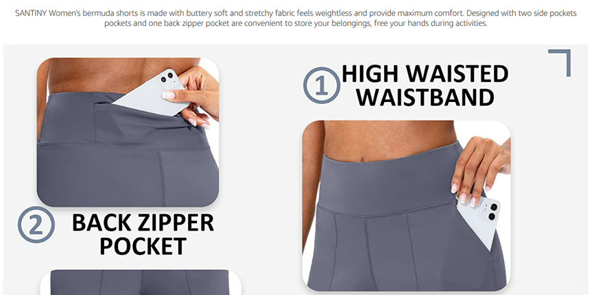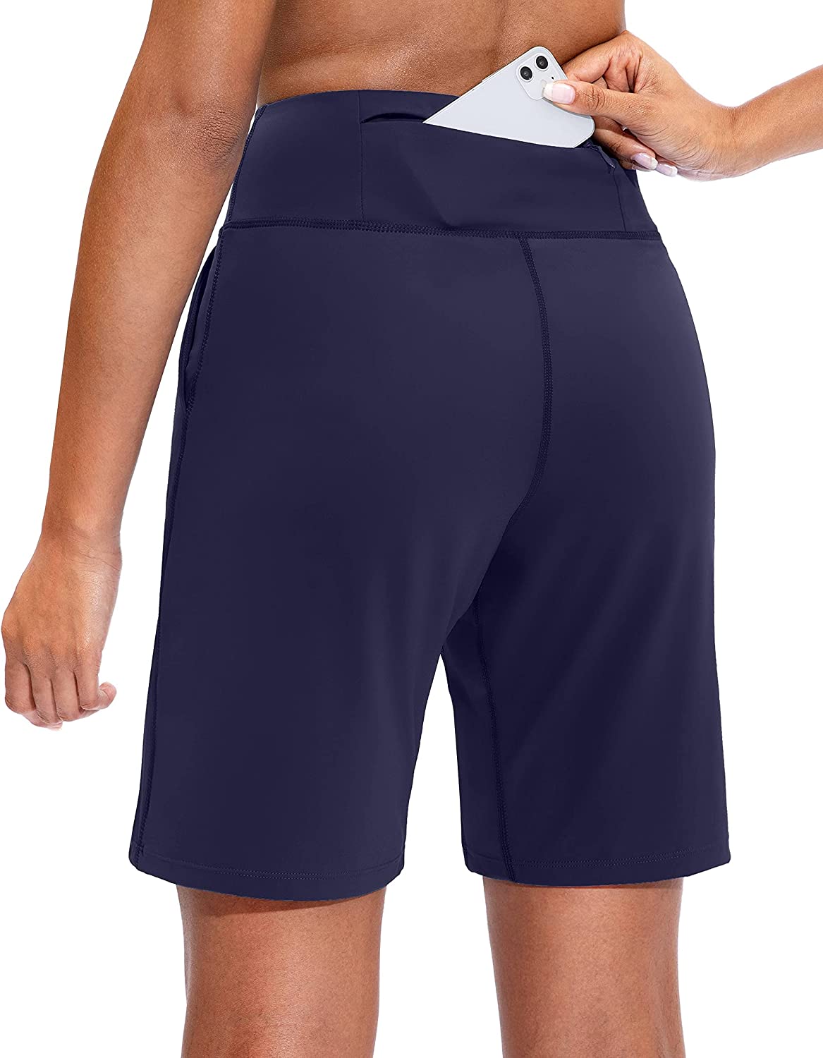 [3 Pockets] The womens bermuda shorts features one back zipper pocket on waistband and two side pockets are deep enough to hold your phone, cards or keys without falling out, free your hands during running or exercise.