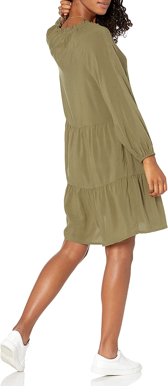 The Drop Women's @caralynmirand Ruffle-Neck Tiered Mini Dress