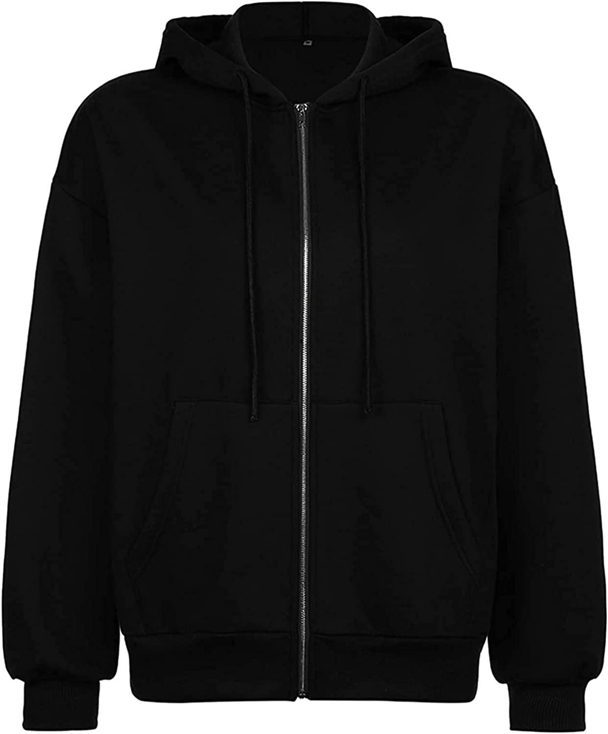 EFAN Women's Cute Hoodies Teen Girl Fall Jacket Oversized Sweatshirts Casual Drawstring Clothes Zip Up Y2K Hoodie with Pocket