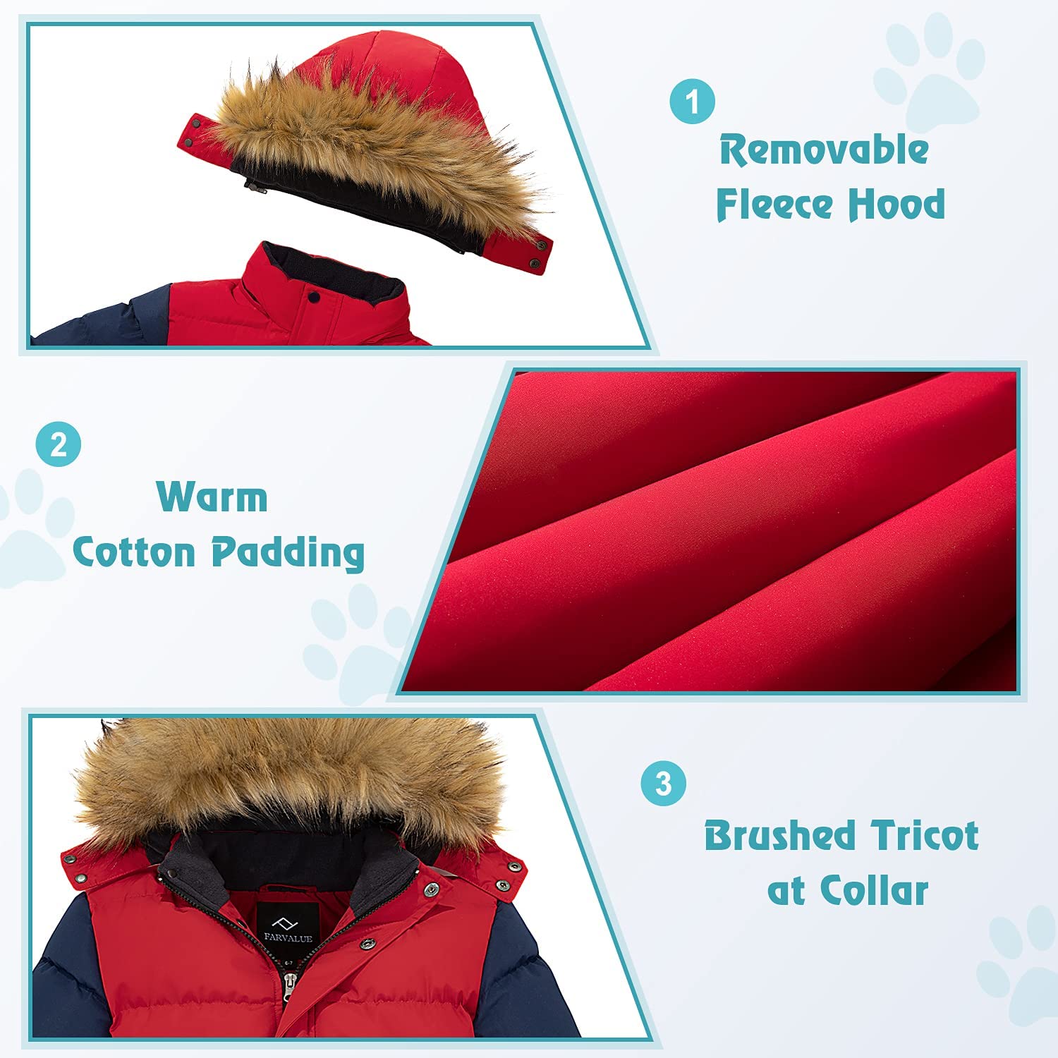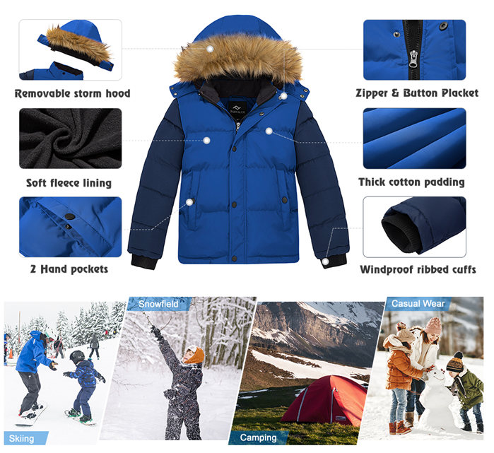 • Upgraded Thermal Winter Jacket: (1) Upgraded to a thick soft fleece lining that is thick and smooth for maximum warmth. (2) Upgraded high-quality insulating cotton pads keep your kids warm.