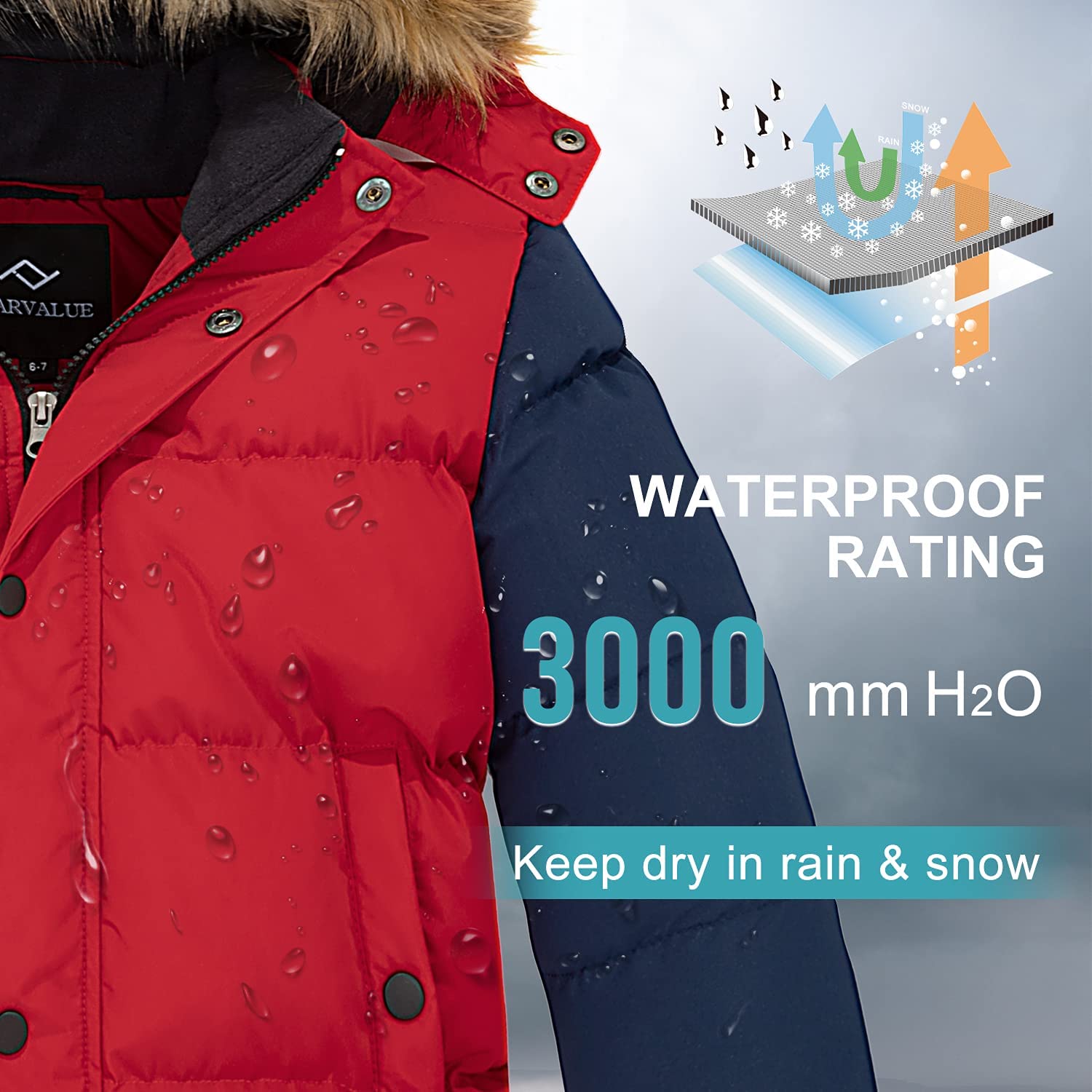 • Water-repellent Puffer Coat: Professional fabric with a waterproof index of 3000mm, this coat can fight light rainy or misty weather.