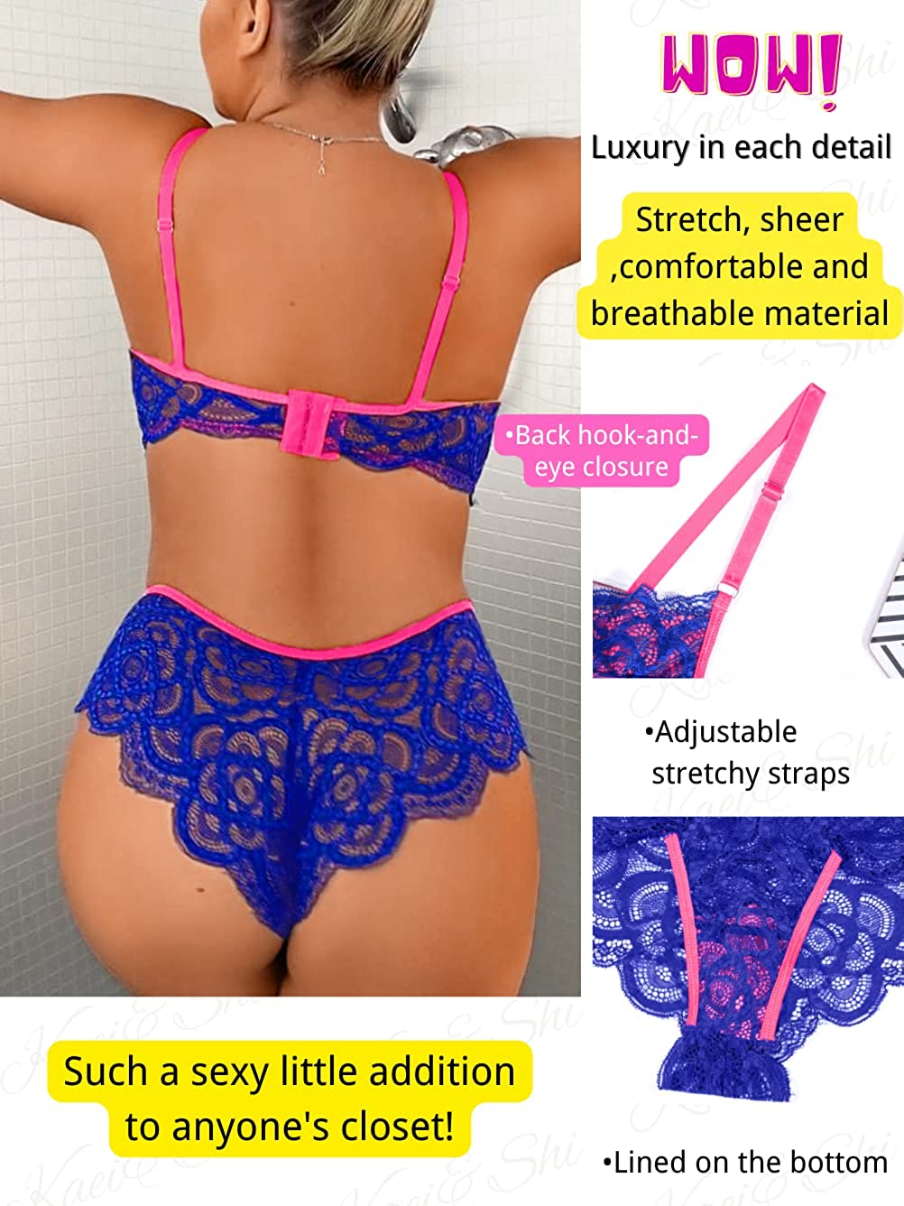 • ✿Design: Lingerie set with high leg lace bottom will highlight your legs line. Hook & eye back closure and adjustable straps make it easy for wearing.