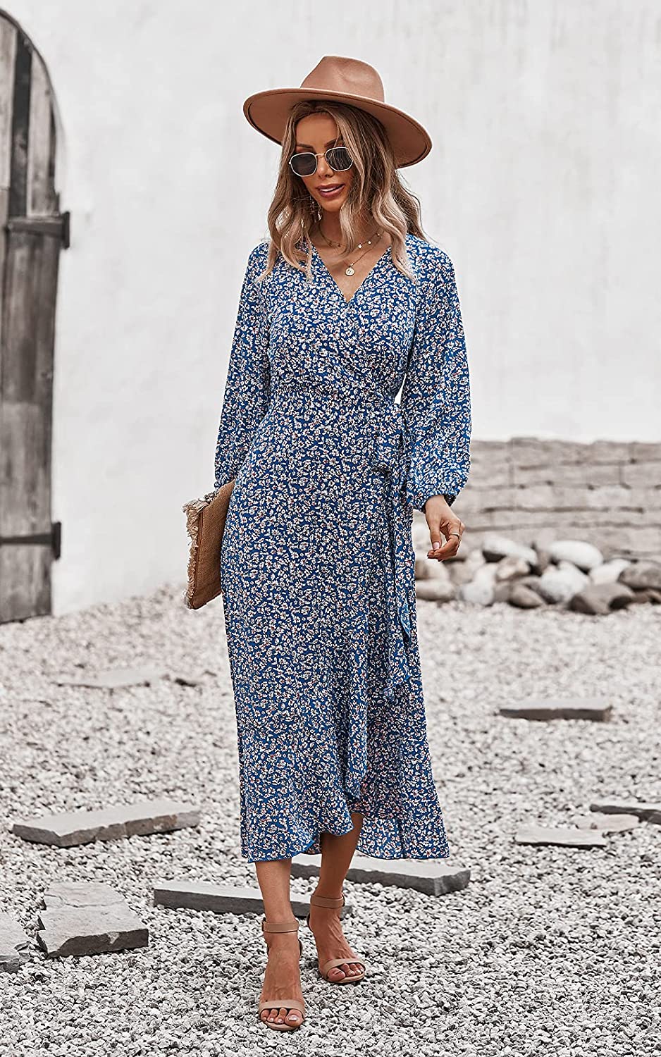 Material:This boho floral dress is made by lightweight and breathable Polyester fabric,more cool and comfy.The unique small floral design is casual and fashion,no matter what style you are,this is maxi dress will not let you down.