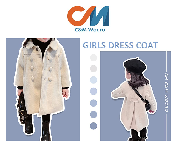 ??【Soft and Warm Design】Long Sleeve Dress Coat. Stylish fit and flare, Slim fit, girl elegant coats has 1 pocket on each side, double breasted jacket for kids. Super cute and nice baby trench coat.