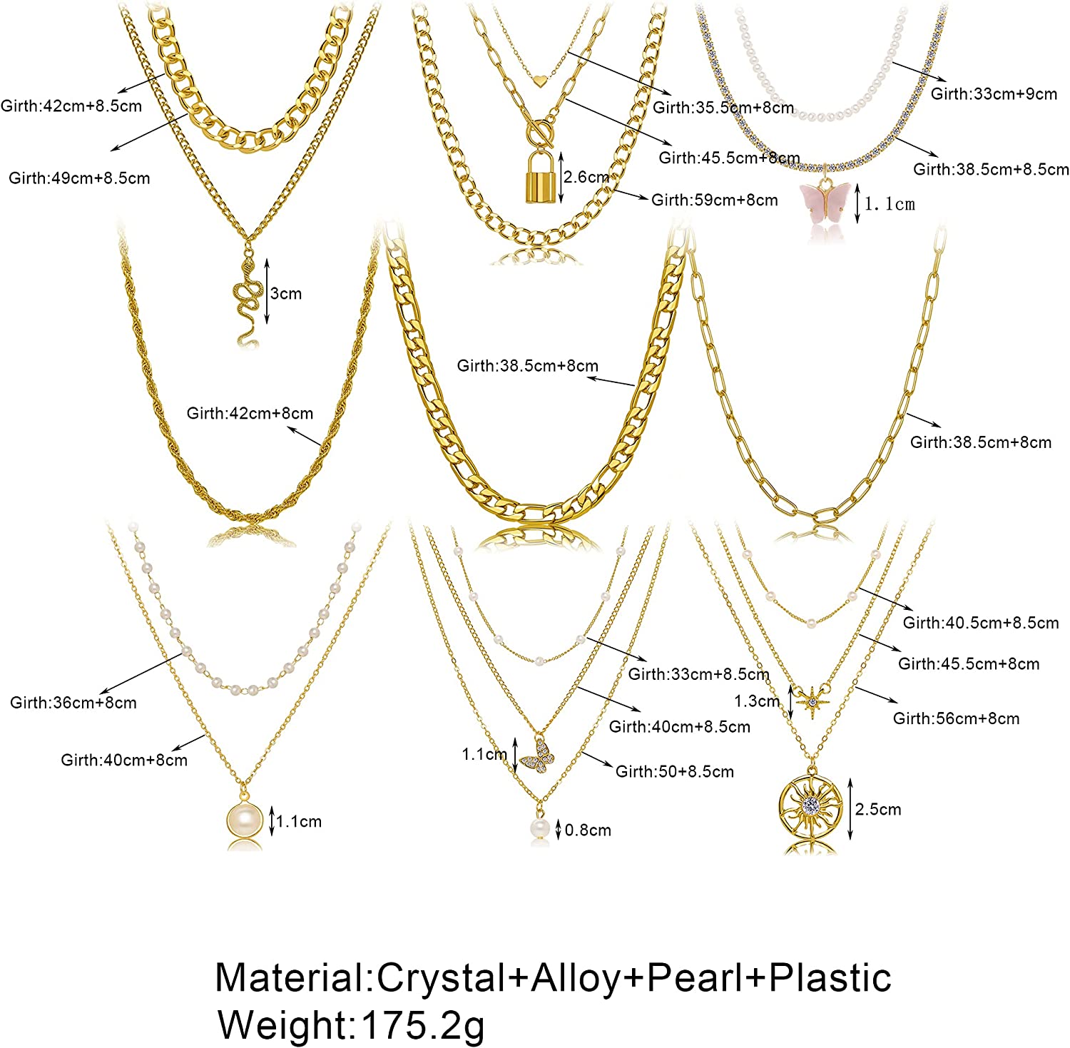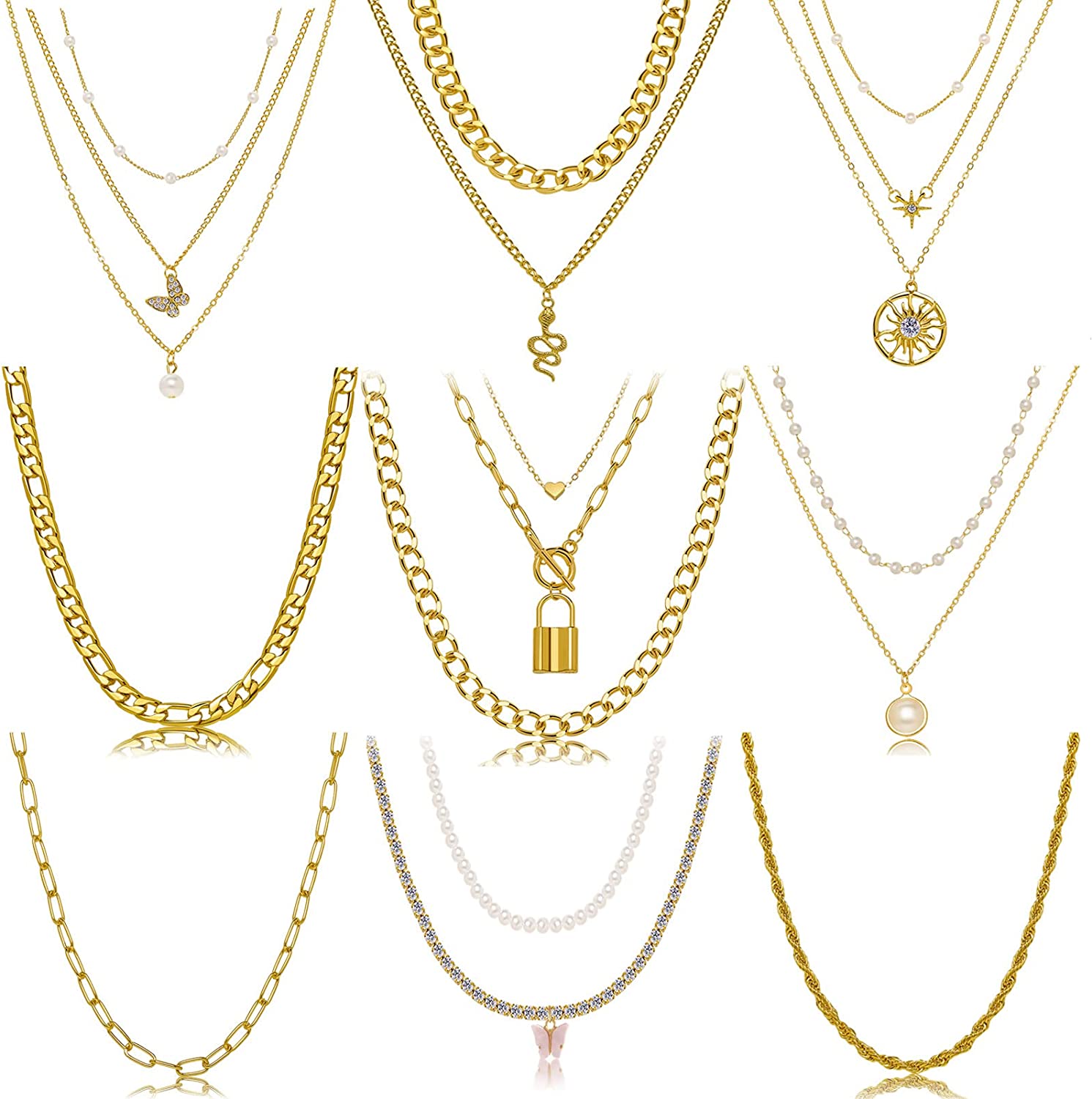 • ❤Gold Layered Necklaces ❤ You will get 9/4/2 pieces different types of dainty layered necklaces , including flat snake chains,Gold Plated Padlock Necklace , Paperclip Link Chain Necklace and other different fashionable chain designs. Each one has It is unique and can be used alone or in combination with other chains. it is an ideal choice for layered necklaces