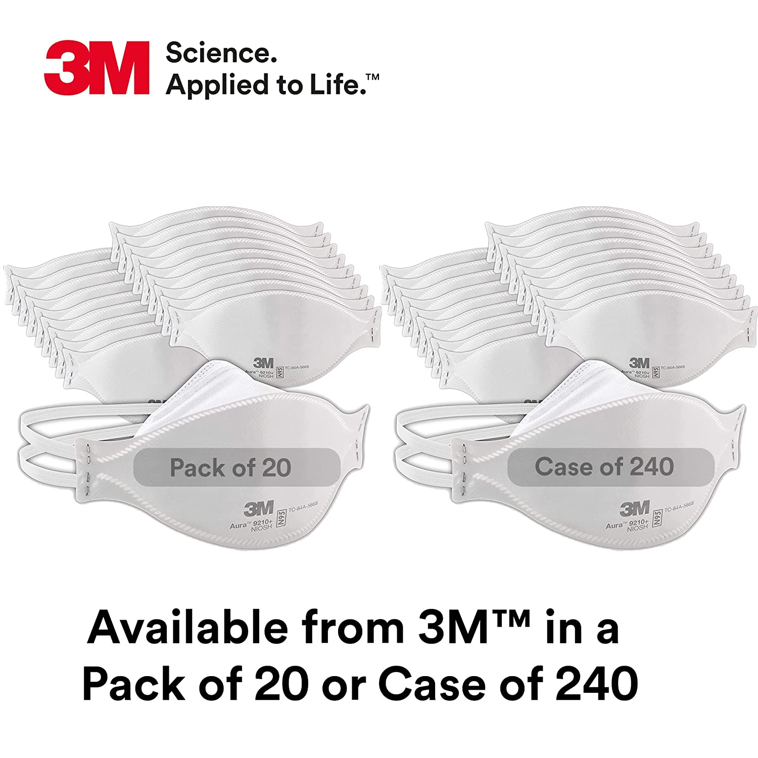 3M Aura Particulate Respirator 9210+, N95, Pack of 20 Disposable Respirators, Convenient Individually Wrapped, Stapled Flat Fold Design, Low Profile Design Reduces Eyewear Fogging
