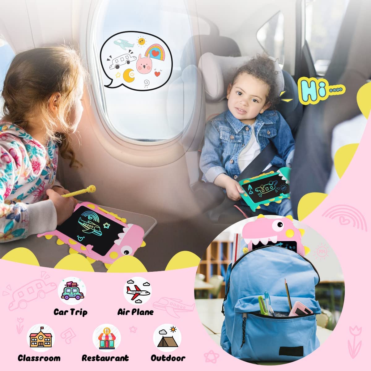 ?【Environmental & Economical】The LCD writing tablet is durable for 120,000+ times writing and erasing, and it can save lots of paper. With it, Children could paint anywhere,Without creating chaos in the room.