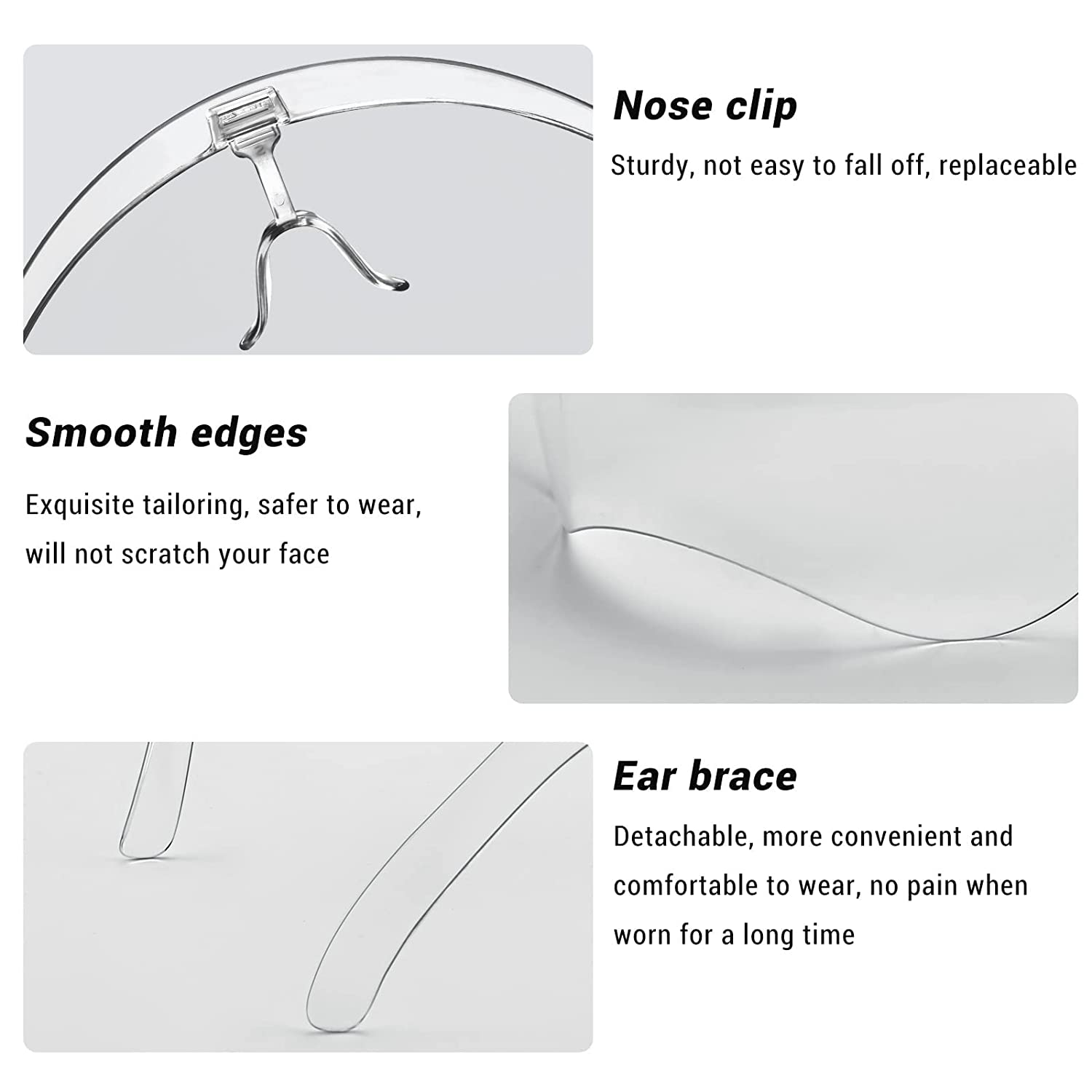 • ❤【ANTI-FOG & HD】Plastic face mask shield lens is made of polycarbonate material. There is glass-like high-definition transparency. Scratch-resistant, sturdy and durable. Clear mask for adults lens has an anti-fog coating on both sides, so long-term use will not produce fog.